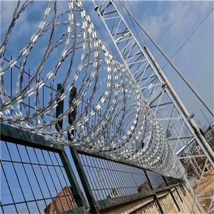 刀刺網(wǎng)是由鍍鋅鋼板沖壓出尖銳的的刀片狀,和鍍鋅鋼絲或者不銹鋼絲做芯線組合而成的一種帶刀片的網(wǎng)。由于刺網(wǎng)造型不易觸摸,因而能達(dá)到極好的防護(hù)隔離效果,和普通的帶刺鐵絲網(wǎng)相比更勝一籌。該刺網(wǎng)可安裝在護(hù)欄網(wǎng)上面、圍墻上面,也可直接用于地面上。刀片刺網(wǎng)按照安裝方法不同可分為:螺旋形刀片刺網(wǎng),直線型刀片刺網(wǎng),蛇腹形刀片刺網(wǎng),刀片刺繩焊接網(wǎng)等。