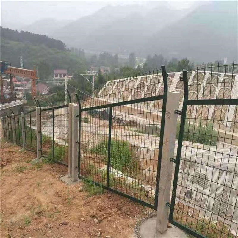 鋼筋混凝土立柱金屬網(wǎng)防護(hù)柵欄由立柱、網(wǎng)片及連接部件組成,防護(hù)高度1.8m。
