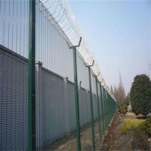 監獄密紋防攀爬網采用358密紋網制作,因此又稱為358護欄,358防爬網,是目前護欄防護中非常受歡迎的一種護欄類型,因其孔小,能很大程度上防止人或工具攀爬。主要應用于軍事、機場、安全部隊、監獄、輕軌、城際列車等的重要隔離措施。