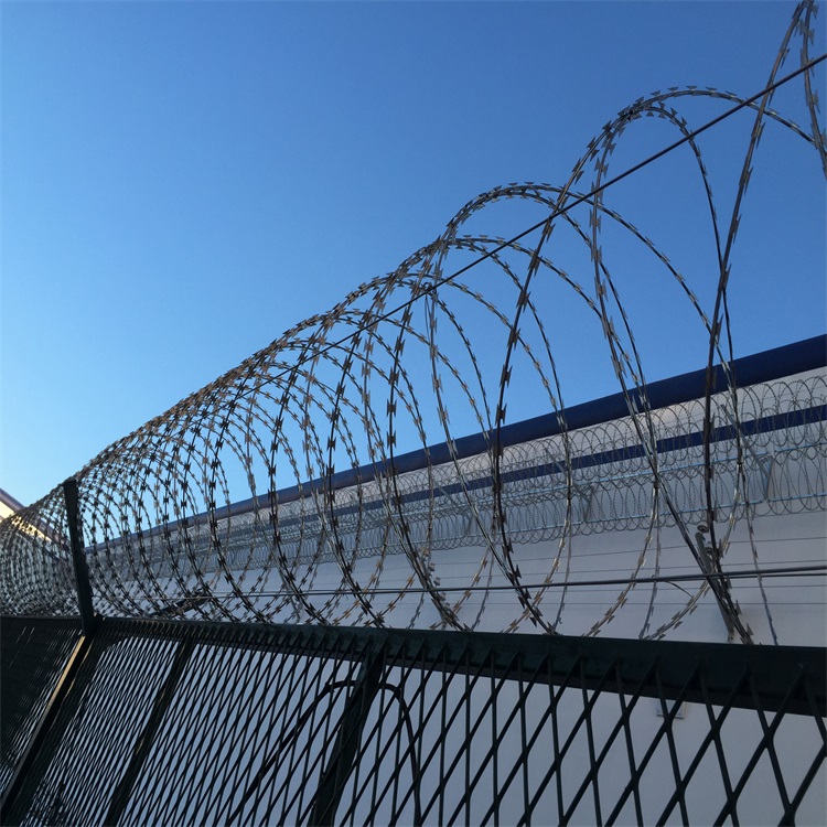 刀刺隔離網的原材料:刺絲是組成刀刺網的主要原料,分為兩種,一種是普通刺絲,一種是刀片刺絲。普通刺絲主要是有兩根鐵絲交織在一起,然后每隔一定的距離用一根小刺絲擰在這兩根刺絲上,就成了刺花。刀片刺繩是有一個帶著對稱刀片的鐵皮,然后半包住鐵絲,不仔細觀察還以為是鐵絲上直接帶著對稱的刀片呢。