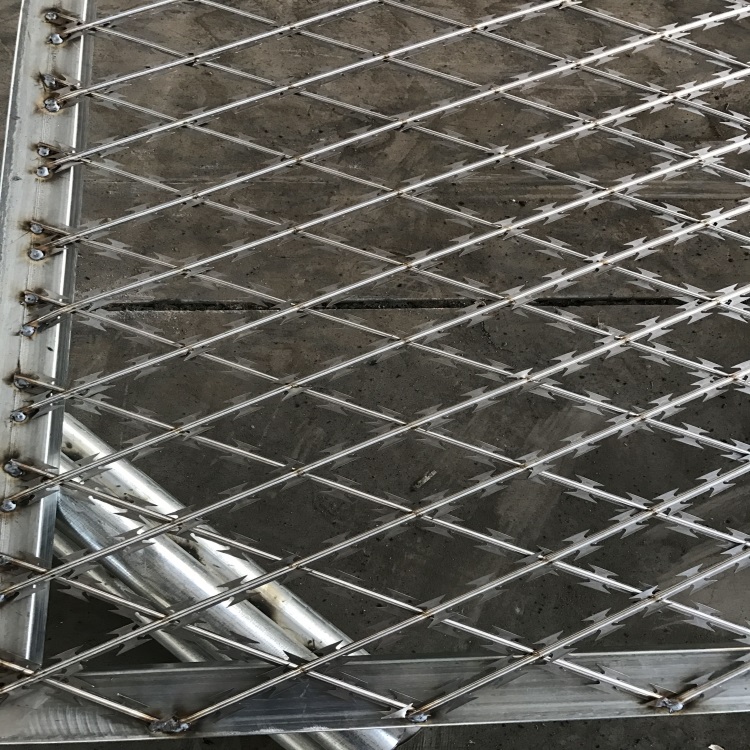 刀刺隔離網的常用規格為:7.5*15cm,5*10cm,15*15cm,材質:電鍍鋅、熱鍍鋅、不銹鋼。刀刺網的常用規格為:BT022,內絲2.5mm刀刺網有很好的隔離作用,防攀爬作用特別大。