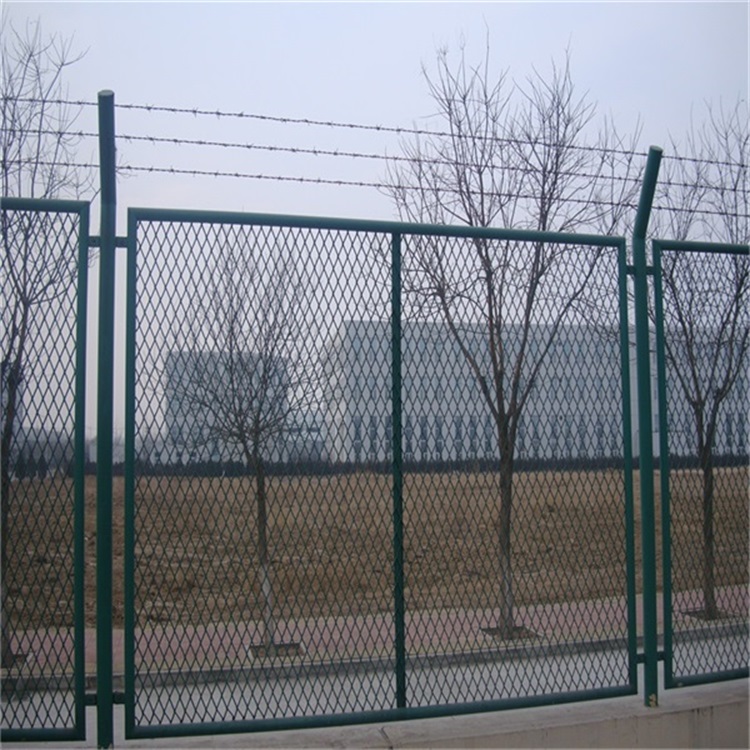 再和大家說說近兩年衍生出的新型廠區邊界防護圍欄,防攀爬效果好,中間網片采用的是焊接刀刺片形式的。不僅僅的是工廠,看守所、監獄、軍事禁區都用這種。在隔離網一層防攀爬效果的基礎上面,再多一道‘安全墻’,這種刀刺網都是利用鋼板沖出刀片來,用專制卡扣固定在一起。兩個圈用卡扣固定,這樣拉伸開才是連貫一圈一圈固定在一起。