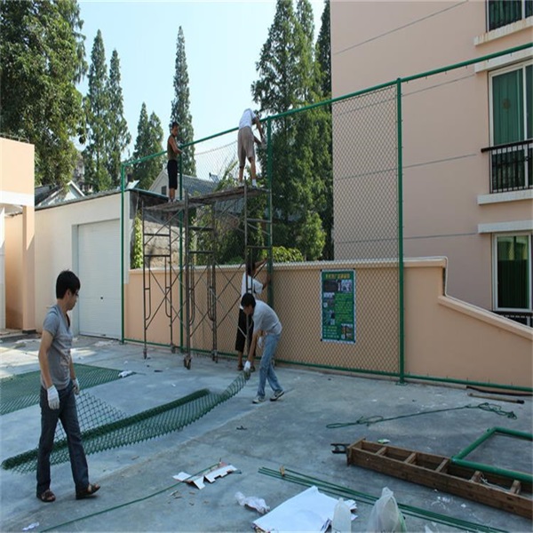 1、進行實地測量及勘察,按圖紙要求,球場圍網(wǎng)高度為4米,網(wǎng)片間距等于3米,根據(jù)實際尺寸適當調整。
