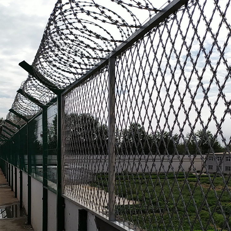 6、網片頂端安裝刀片刺繩:芯絲直徑2.5mm、刀長22mm,刀寬15mm,刀片刺繩直徑500mm-600mm。