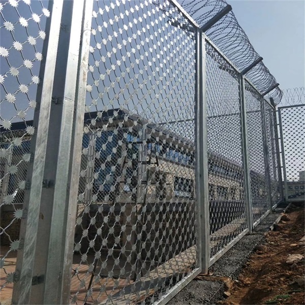 太陽花鋼網墻又稱太陽花隔離網,此種產品一改往常鋼網墻長方形的網孔形式,采用菱形孔的美格網網片,在網片的每個截點焊接梅花形刺片,因其特殊的外形,相較于之前的普通鋼網墻,無法采取腳踩、手握的方式翻越,防攀爬性能、安全性能有所增強。表面處理多采取熱浸鍍鋅的形式,也有要求較高的地方采用不銹鋼材質的鋼網墻,防腐蝕效果更佳。