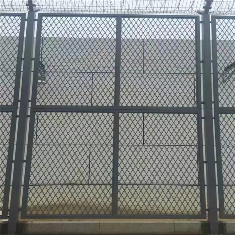 監獄刺絲滾籠隔離網網片固定框:40X30X2.0m熱鍍鋅方鋼管。每網片框增加一道方管垂直中稱。