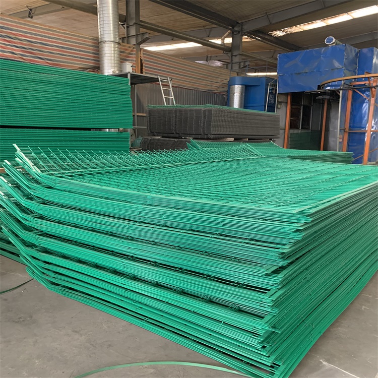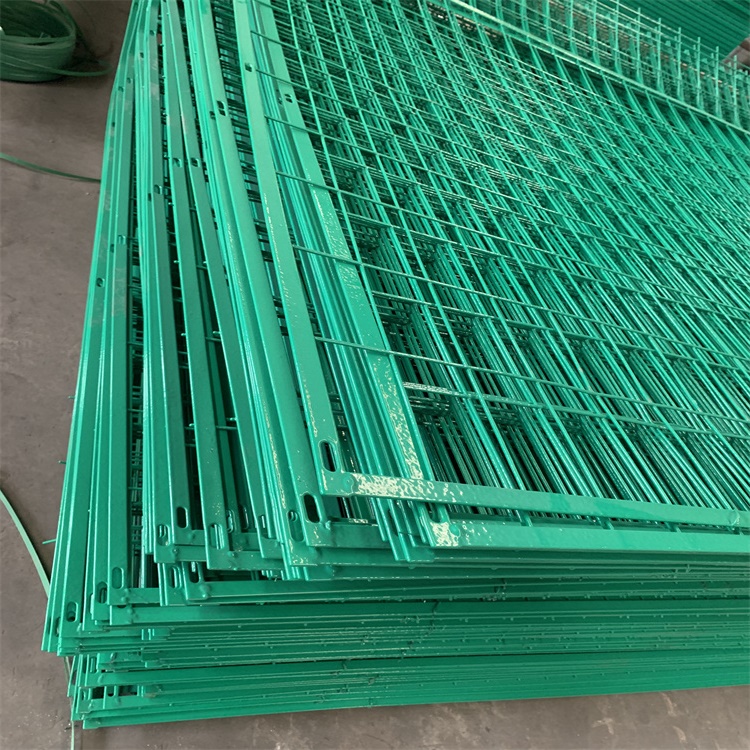 扁鐵框架公路護欄網的邊框特別細,扁鐵條框架規格為20*2mm,絲徑塑后4.0mm,網孔9cm*17cm,然后高度1.7m,寬度為3m。