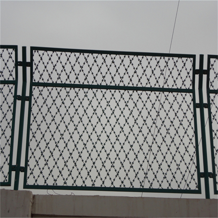 現在很多企業工廠都會用到圍墻刀片刺網,因為是圍墻加高專用,高度1.2m-2m都可以。網孔7.5cm*15cm,5*10cm。整體噴涂處理,草綠色,墨綠色,灰色等都可以出。如果您想節省預算,請直接找生產廠家,節省利潤。