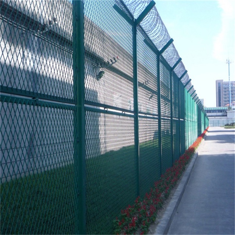 監獄加高鋼網墻的施工要求;在施工前按照業主的要求,針對需要隔離的區域,進行準確的測量(長度、坡度)。將測量的數據準確無誤的匯報給工廠,工廠根據實地測量數據,以更加能適應地形對監獄隔離網進行坡度和長度的調整?,F場安裝人員,在安裝之前。首先確定監獄隔離網的包裝是否破損,有無變形情況,以便及時匯報給工廠,做好充足的備貨。按照測量好的數據,根據業主要求以立柱中心距為標準進行挖坑,坑的大小不低于400*400*500mm,坑底部用石灰土攪拌,然后夯實。然后將立柱用水泥埋入坑中,埋入部分不小于400mm,依次安裝30米左右,進行依次調直,確保豎向垂直,橫向筆直一條線,對于重點區域采用斜桿支撐加固。立柱安裝完成后,檢查最早安裝的立柱的水泥凝固情況,是否達到要求,如達到要求,可依次進行網片安裝。將網片按照事先測量好的數據,對號安裝,確保安裝無誤。網片的安裝孔對準立柱的連接板,然后用不銹鋼螺栓依次穿過網片連接板、立柱連接板,將防盜帽套在螺栓上,用螺母鎖緊,按照前面的步驟,依次將其他連接板固定。安裝完網片以后檢查是否有螺絲松動,施工時表面的破損,及時刷防銹漆,以防止生銹。檢查立桿是否有松動現象,如有,需及時處理。然后將不銹鋼拉絲固定在隔離網的頂部,形成一個v型托網用于架設蛇腹形刀刺網,將刀刺網按照12cm的間距均勻鋪設在v型支架上,用不銹鋼防拆卸卡扣與v型托網上的不銹鋼拉絲固定。在安裝完成后,對監獄隔離網的防攀爬性能,進行跨越、防破壞測試。待以上工作完成以后,通知業主進行驗收。