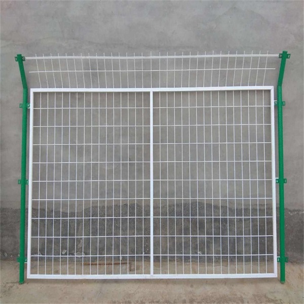 網(wǎng)片鏈節(jié)為單較合,網(wǎng)格為50×50mm,高度為2.5m。其底部彎曲,頂部垂直分開。網(wǎng)片鏈節(jié)的底部高出地面5cm。鏈節(jié)用直徑為4mm,間距為30cm的不銹夾連接到系緊鋼絲的外側(cè)。網(wǎng)片鏈節(jié)的端部應(yīng)咬合在一起。網(wǎng)片鏈節(jié)上應(yīng)有6根系緊的鋼絲,系緊的鋼絲間的更大距離為50cm。這些鋼絲應(yīng)符合與鏈節(jié)相同的規(guī)范要求。系緊設(shè)備應(yīng)同鋼柱一樣為防腐的。下部系緊鋼絲應(yīng)穿入防腐鋼銷,鋼銷固定于混凝土底板上或錨固于巖石或路面上。每?jī)筛又g應(yīng)有兩個(gè)鋼銷,鋼銷的標(biāo)準(zhǔn)間距為1.25m。