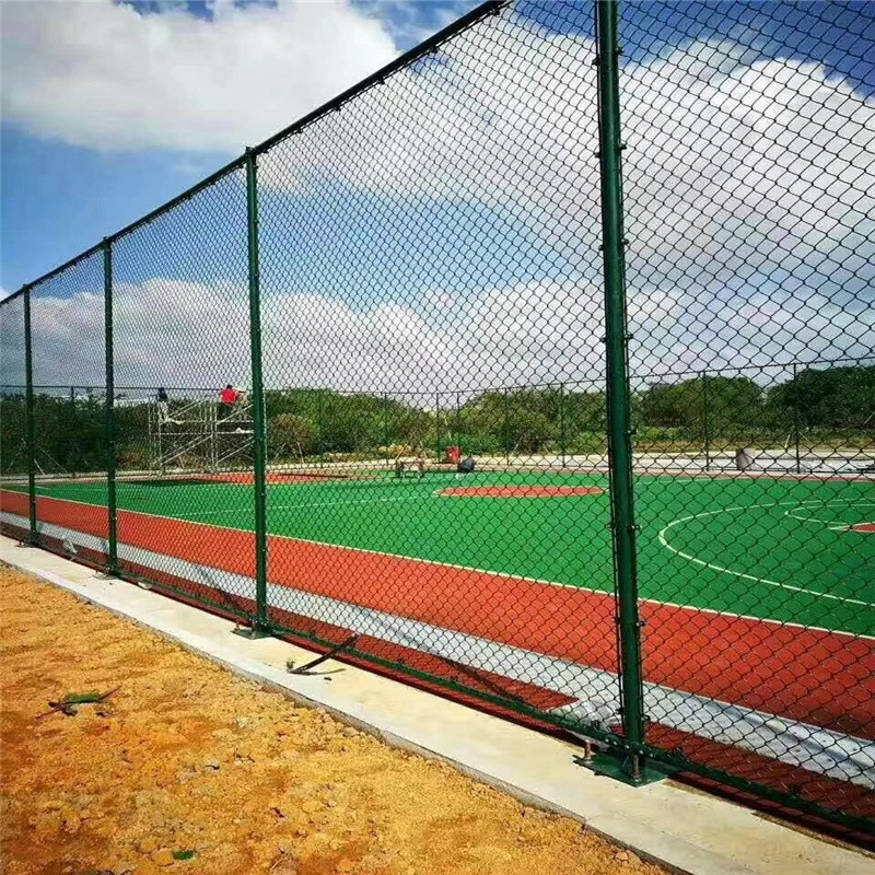 籃球場圍網樣式一:上下通卡鏈接籃球場圍網結構,上下橫管38mm或48mm,鋼筋棍,立柱48mm或60mm圓管特點:安裝方便,造價低,美觀大方。安裝流程:先將勾花網展平,然后穿插入鋼筋棍:上下橫管型卡子固定鋼筋棍{利用防盜螺絲固定}:通卡將立柱與橫管固定。