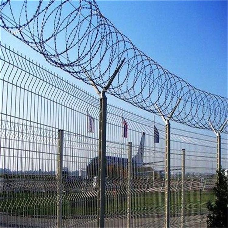 6、不銹鋼刀刺網,直徑500mm、600mm的不銹鋼304材質刀刺網,螺旋狀安裝在機場圍欄網上方,增加機場封閉性,阻止攀爬行為發生,保障人身安全和整個機場順利開展工作。