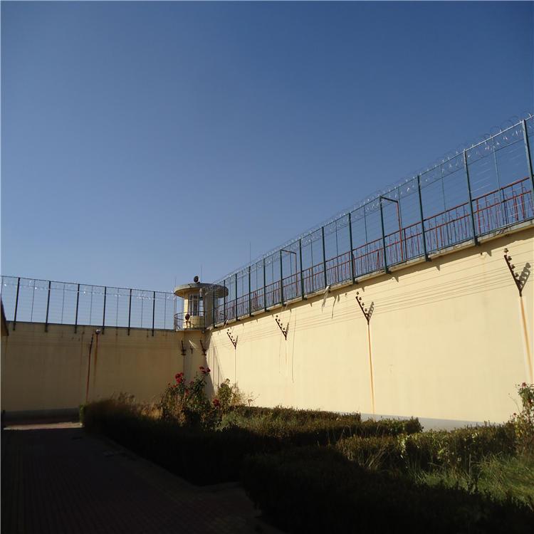 看守所巡邏道隔離網/武警中隊巡邏道隔離網立柱要求:巡邏道隔離網的立柱需要根據不同的高墻來設計成不同的樣式,一般分為:底盤柱、側面底盤柱、小底盤柱等等。立柱的原材料外形尺寸一般選∶80*80mm/60*60mm等等。大多數采用帶V型柱的立柱,頂部安裝蛇腹形刀刺網。網片樣式︰鋼筋焊接式、刀刺焊接式、邊框式等等;網格大小:50mm*150mm/75mm*150mm/50mm*50mm等等網絲直徑:4mm-6mm邊框大小:30mm*20mm/30mm*30mm/40mm*40mm等等。