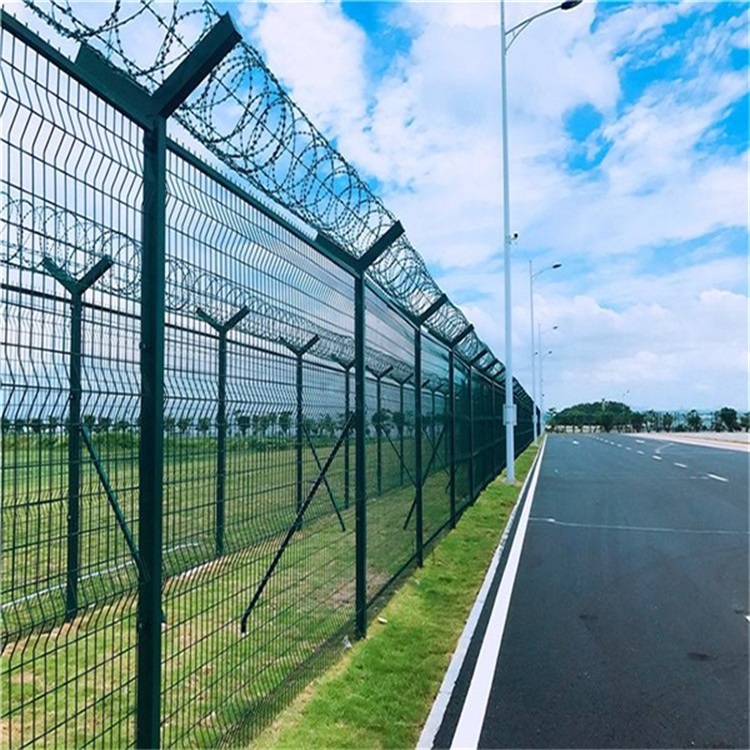 4、安裝在上部的機(jī)場護(hù)欄網(wǎng)網(wǎng)片能夠有效防止外部入侵,并且其網(wǎng)片采用卡固定連接方式,可以有效防止人為損壞。
