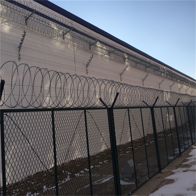 防攀爬刺網(wǎng)具有防腐、防老化、抗曬、耐候等特點。防腐形式有電鍍、熱鍍。防攀爬刺網(wǎng)按照安裝方法不同可分為:(蛇腹式)螺旋式刀片刺繩,直線型刀片刺繩,平板式刀片刺繩,刀片刺繩焊接網(wǎng)等,