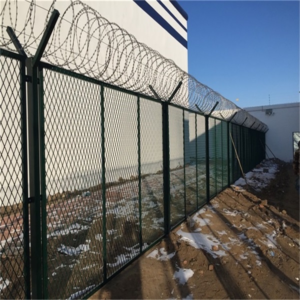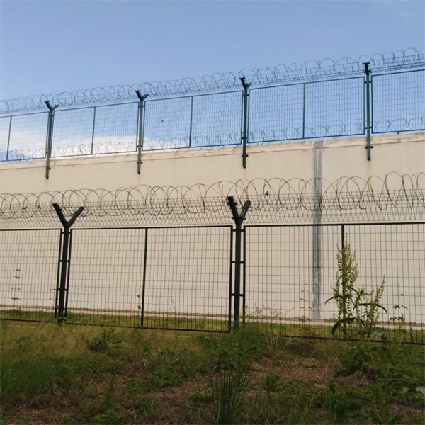 2:監獄鋼網墻用在放風場 警戒線內就需要做成2.5-5m左右的高度。上部加Y型柱,有效防止犯人的逃脫,因為上部會安裝刀片刺繩,對人也起到恐嚇的作用。其他特殊規格均可定做。我們會為您提供最好的使用方案。