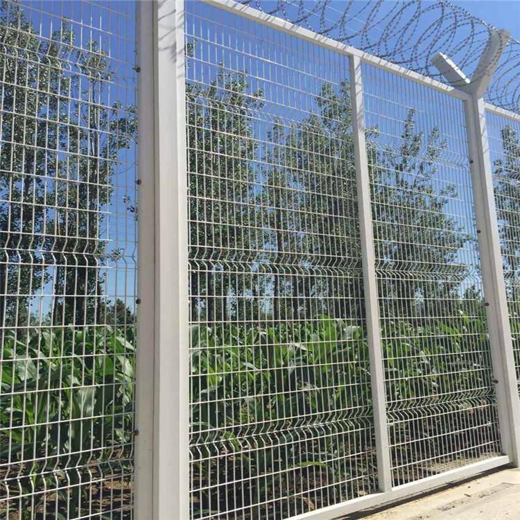監獄看守所隔離網片兩側的防護設計立柱可以采用傳統國標進行尺寸:圓柱:直徑48mmX2mm圓管,直徑60X3mm圓管,直徑80mmX3mm圓管結構等等:方管有40X40mmX2.5mm,60X60X3mm,80X80X3mm等等。客戶可根據實際需要選購。其實不管是焊接鐵絲網片還是刀刺網片都是監獄看守所隔離網防護圍墻。