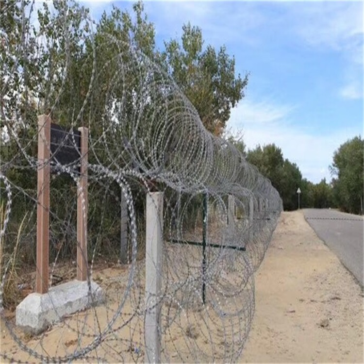 刺鐵絲和刀片刺繩的區別在哪里呢? 刀片刺繩護欄網是一種刺繩護欄網的一種, 刺繩護欄網 主要有兩種樣式,一種是俗稱鐵蒺藜刺繩,另一種是...的防護隔離效果。 由于 刀片刺繩 護欄網高安全性和良好的抗攀爬能力,被廣泛的應用在鐵路、高速公路、機場、監獄、軍事基地等等重要場所。 [ 查看詳情 ]