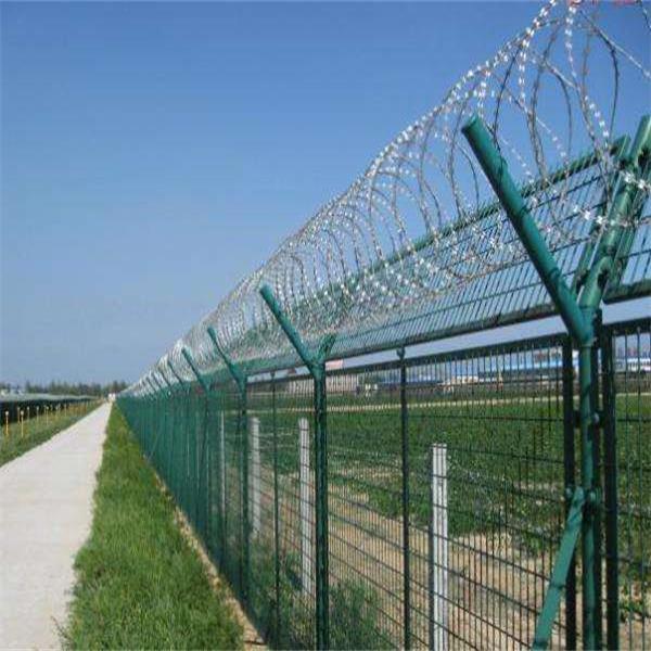 機場飛行區(qū)角鋼隔離圍界 又被稱為刀片刺籠隔離網(wǎng),立柱頂端呈Y字型,上面架設(shè)刀...m 立柱:60x60x4.0mm 刺絲滾籠:500mm直徑。 [ 查看詳情 ]