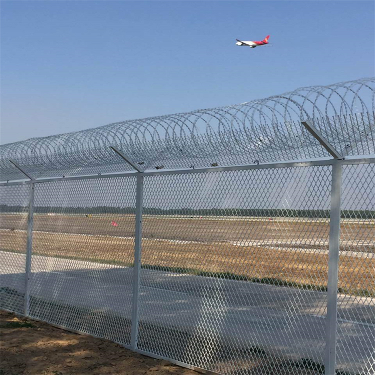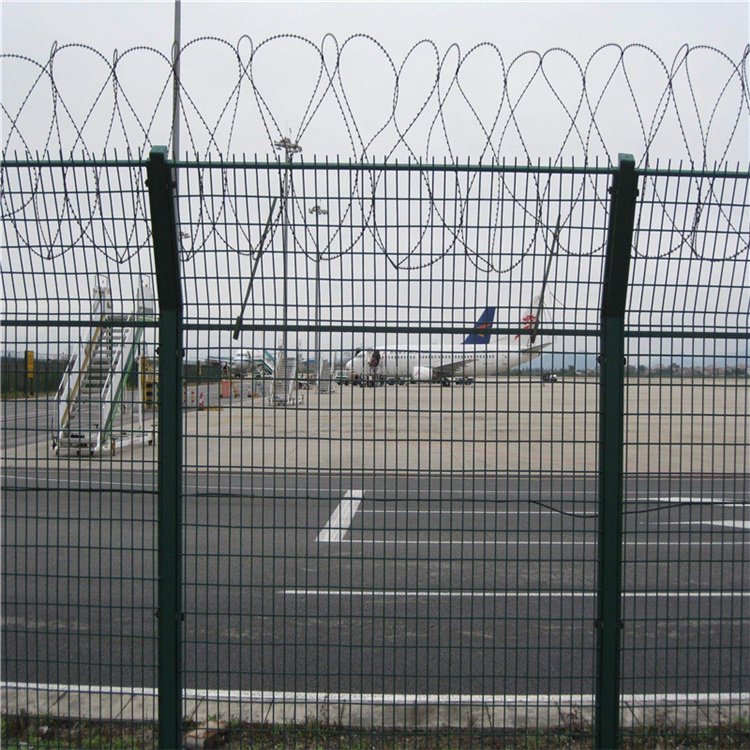 安裝機場護欄網時應該注意那些情況? 機場護欄網 具有美觀、實用、方便運輸和安裝的特點。如果在機場護欄網頂部加裝刀片刺絲、刀片刺繩后...具有安全性高、防攀爬能力好,網片連接方式采用特制SBS緊扣件,有效防止人為的破壞性拆卸,橫向四道折彎加強筋,使網面強度顯著增加。 [ 查看詳情 ]