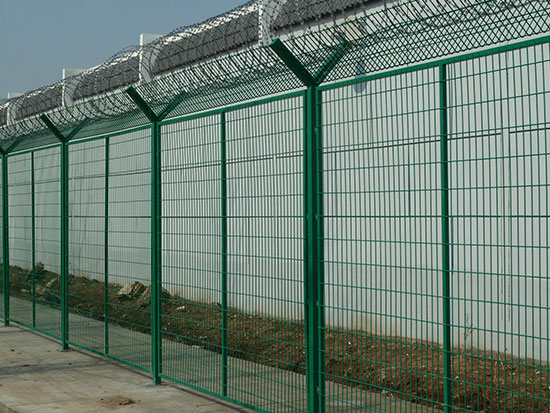 監獄鋼網墻:一般鋼網墻高度3--5米,立柱跨度為2.5米--3米。是由防盜美格網加焊防爬刺片而成,美格網的網孔一般為:100X100mm,絲徑為:5-8mm,刺片直徑50-150mm,形狀似太陽,四周布滿刺尖。焊接在美格網每一個交接點處,是由二氧化碳保護焊進行焊接的,網邊框為20X30mm、40X60mm、鍍鋅方管,壁厚不得少于1.5mm,然后把焊接打磨好的邊框與網片連接,再經過靜電噴涂就算成品了。