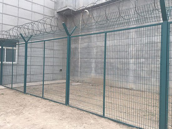 3.監(jiān)獄隔離柵顏色:聚酯涂層綠色RAL6005,紅色,黃色,WHTALAL9010等。