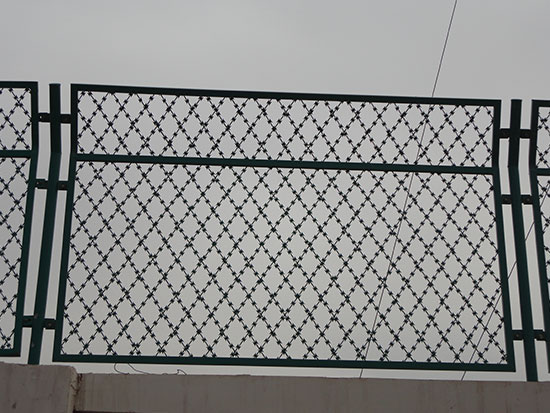 監獄刀刺隔離網又名刀片刺繩隔離網、刀刺防護網。監獄刀片隔離網是一種新型防護網。該產品具有嚇阻效果好.美觀.施工便利.經濟實用等優異特點。