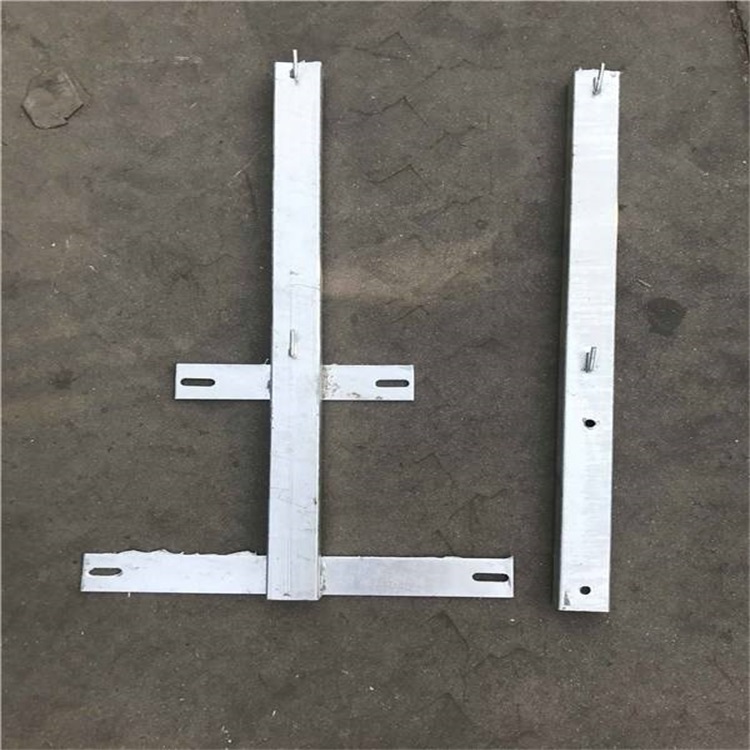 鐵路防護柵欄土字支架是專業制作高鐵兩側延線混凝土防護柵欄上使用的刀刺滾籠配套設施,土字柱一般尺寸有1005和730兩種,主材使用50*30*2的矩形鋼管,按照圖紙焊接50*4.5的鋼片,加上底座,焊接好后進行熱浸鋅處理,上鋅量達到270克以上,達到長期防銹的效果,保證刺絲滾籠的使用年限。