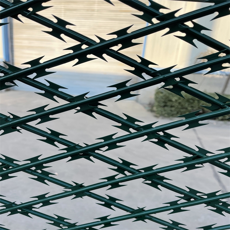 1、焊接刀刺網的選擇,圍墻用的焊接刀刺隔離網所使用的網片是由bto-22型號刀片刺條焊接而成的,芯線和刺板的好壞直接影響到刀刺網網片的質量,在選芯線和刺板方面應選擇是由正規廠家生產的優質芯線拉出來的成品鋼絲,對于刀刺網隔離網網片采用哪種方式的鍍鋅方法比較好這都是要了解的﹔