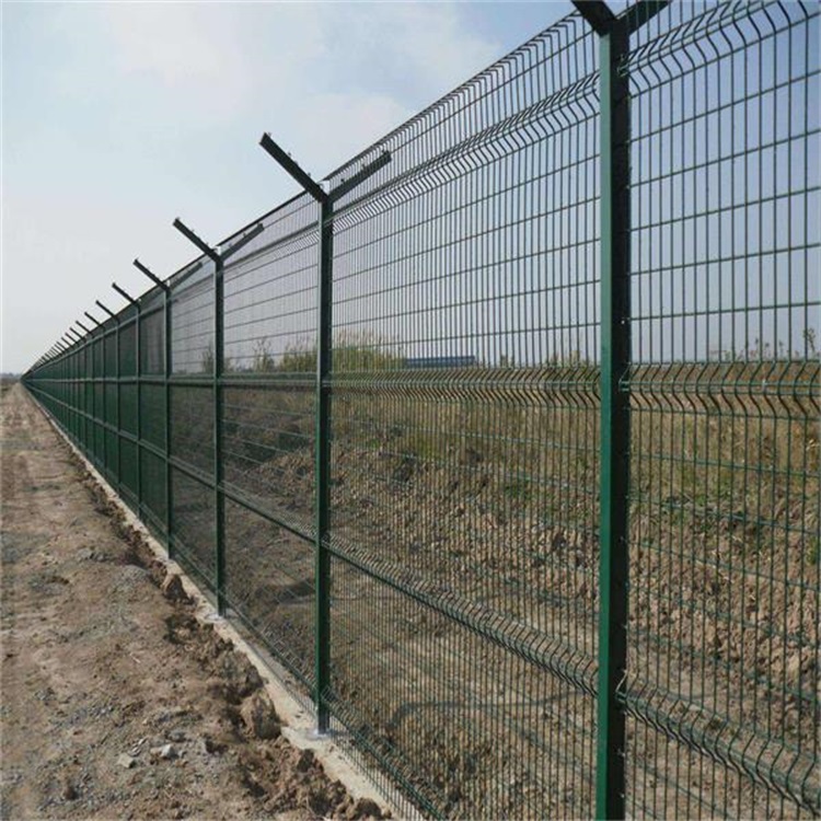 機場護欄網的國際標準,護欄網片及V型網的網孔其相鄰橫絲間距不得大于10cm,豎絲間距不得大于5cm,機場護欄網片與立柱之間的縫隙不得大于2mm,網片離地間距不得大于2cm。焊接護欄網片的鋼絲直徑必須大于等于5mm。機場護欄的立柱應采用60*60mm方管制成,管壁厚度不得低于2mm,立柱及網片的表面防腐年限不能低于8年。機場護欄網頂部安裝的刀片刺網直徑要大于600mm,刺圈間距20-25cm。機場鋼筋護欄網的立柱基礎應采用現澆混凝土制成,截面500*500mm,高度800mm。