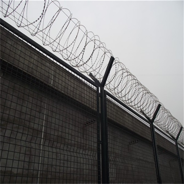 監(jiān)獄刺絲滾籠隔離網(wǎng)立柱: 80mmX80mmX 3mm熱鍍鋅方鋼管,地上高度4500m,地下高度700mm (需加橫筋固定) ,立柱采用 Q235方管,立柱頂部戴方帽,厚度5cm,留燈安裝孔,院子四角采用與門柱相近的裝飾柱,頂部安燈。監(jiān)獄刺絲滾籠隔離網(wǎng)網(wǎng)片:寬2500mm、 高200mm,分上下二層結(jié)構(gòu),總高4米;上下層之間邊耳連接,根據(jù)需要做加強(qiáng)折彎,確 保網(wǎng)片不變形。