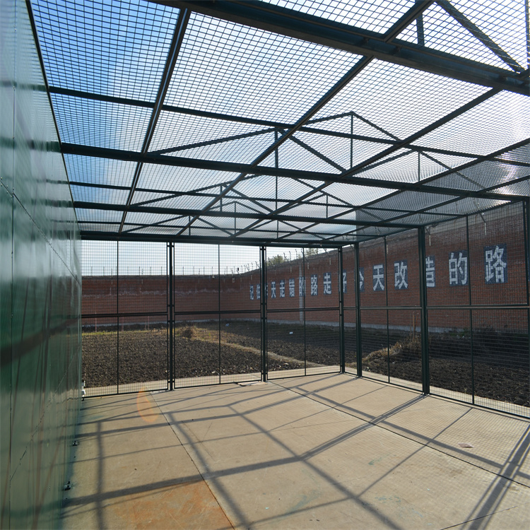 2、監獄內部放風地隔離網安裝高度一般在5米高左右,內外兩層,兩層之間可加刀片刺繩,防止攀爬。