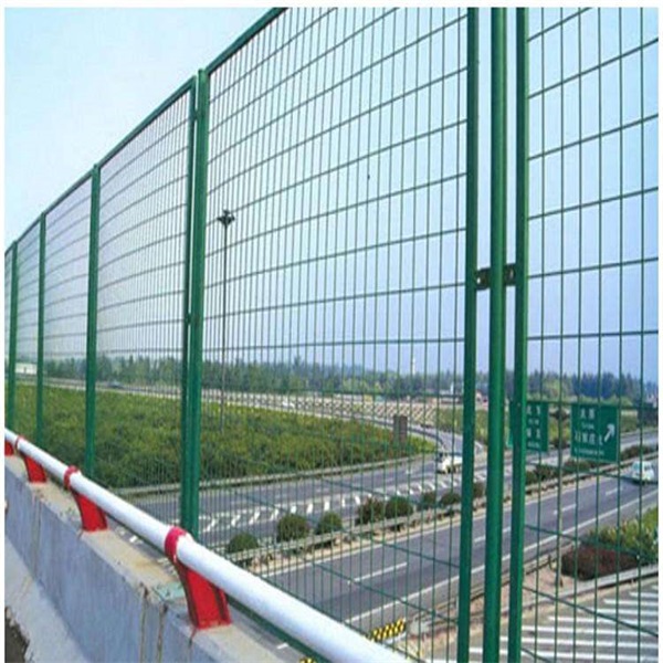 橋梁防落物網雙圈樣式的,雙圈護欄網是用冷拔低碳鋼絲焊接成網筒狀卷邊與網面一體,采用鍍鋅進行防腐處理,具有很強的耐腐蝕性,然后進行噴、浸塑,各種顏色的噴、浸塑;后連接附件與鋼管支柱固定。