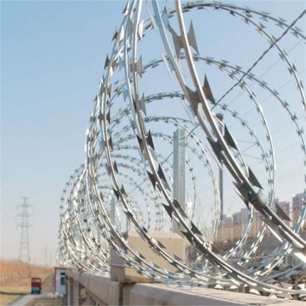 刺絲滾籠工藝:防爬次網由熱鍍鋅鋼板或不銹鋼薄板沖壓出尖銳的刀片狀,高張力鍍鋅鋼絲或者不銹鋼絲做芯線組合而成的阻絕器材。由于刺網造形獨特不易觸摸,因而能達到極好的防護隔離效果。