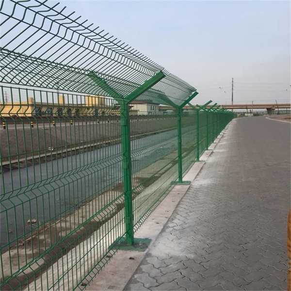 (7)立柱基礎(chǔ)混凝土強(qiáng)度達(dá)設(shè)計(jì)強(qiáng)度的70%以后,方可進(jìn)行網(wǎng)片安裝。立柱、隔離網(wǎng)片及斜撐的制造加工要求在工廠(chǎng)集中制作完成,以保證加工制作的質(zhì)量。網(wǎng)片安裝后要求網(wǎng)面平整、無(wú)明顯的凹凸現(xiàn)象,框架與立柱連接牢固,框架整體平順美觀。