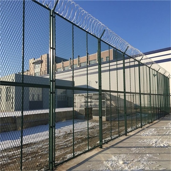 監獄鋼網墻采用低碳鋼絲制成,立柱采用Y型柱的樣式,方便固定不銹鋼刀刺網,加強鋼網墻的防攀爬、防翻越特殊要求,并廣泛用于銀行,監獄,機場,軍事機地,核電站,禁區等地的防盜,防護。