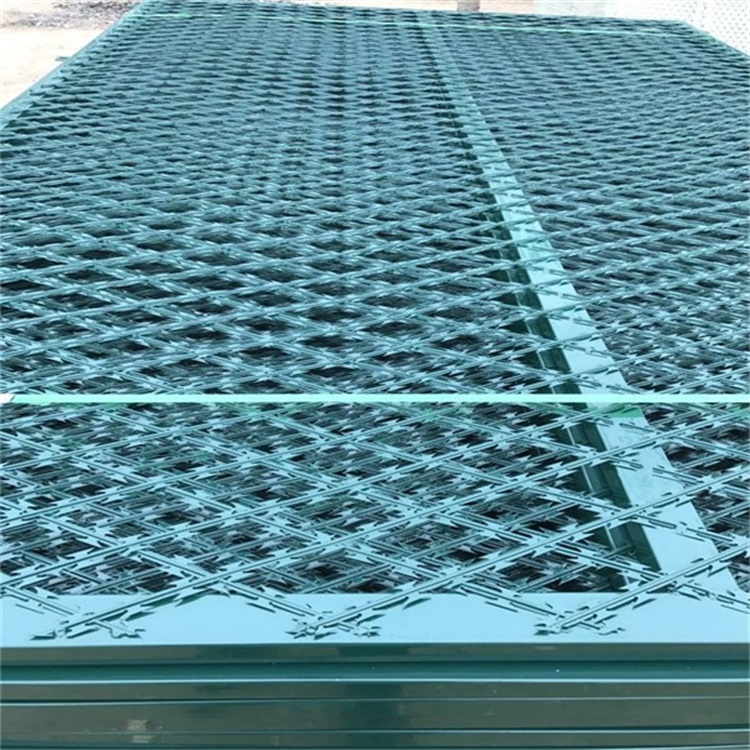 刀刺片隔離網(wǎng)防腐工藝:進(jìn)行科學(xué)的防腐處理,要求實(shí)際使用壽命在10年以上。采用熱鍍鋅加浸塑處理,上鋅量>300g/m2,專用PVC塑粉,上塑量>0.7mm,表面無針孔、開裂、漏塑、塑液流淌等質(zhì)量缺陷,顏色為墨綠色。