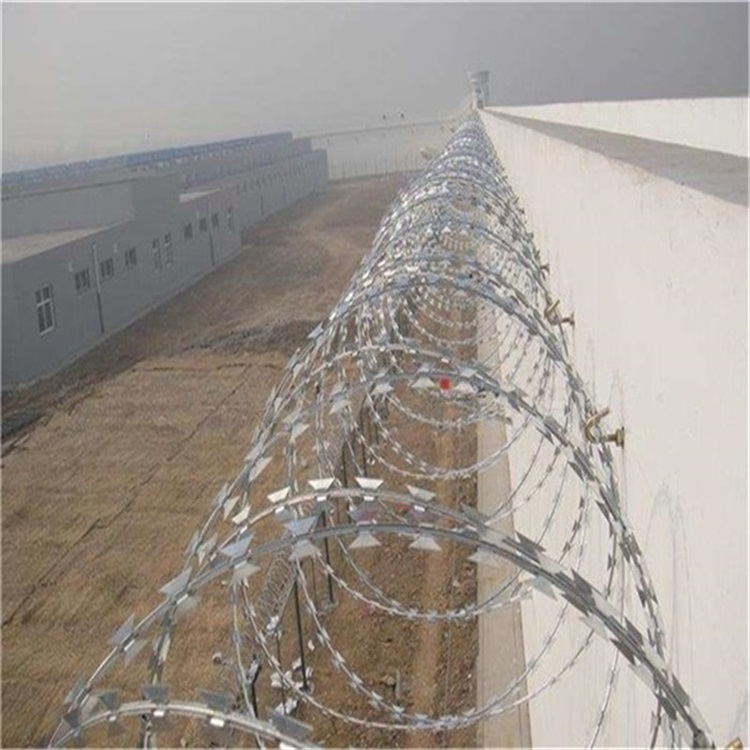 刀片刺繩也被稱為刀片刺絲、刀片刺網(wǎng),是一種新型防護網(wǎng)。具有美觀、經(jīng)濟實用、防阻效果好、施工便利等優(yōu)異特點。刀片刺網(wǎng)由熱鍍鋅鋼板或不銹鋼薄板沖壓出尖銳的刀片狀防護網(wǎng)。